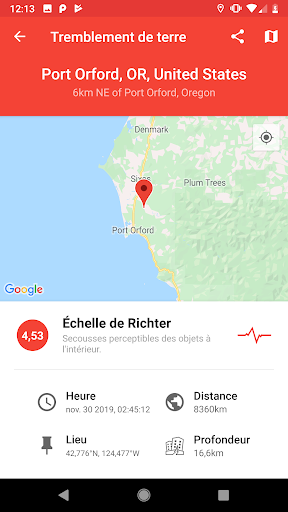 - Puissante fonction de recherche pour retrouver des tremblements de terre remontant à 1970 !