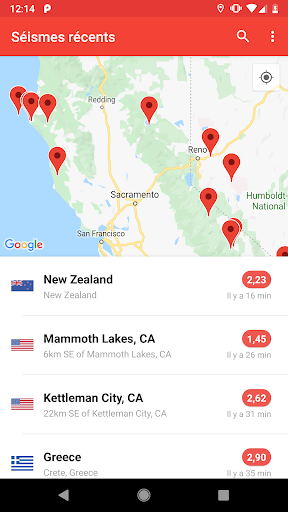 - Design magnifique et simple, voyez les tremblements de terre sur une carte et dans une liste.