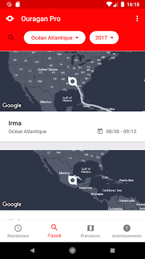 - Cartes de suivi interactives pour chaque ouragan.