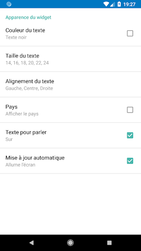 Personnalisez la couleur, la taille et l'alignement de la police en fonction du papier peint et du pays. Appuyez sur le widget pour actualiser votre adresse actuelle. Widget ne met pas à jour périodiquement pour économiser la batterie. Mais, il sera mis à jour chaque fois que l'écran est allumé. Nécessite le service de localisation et la permission.
