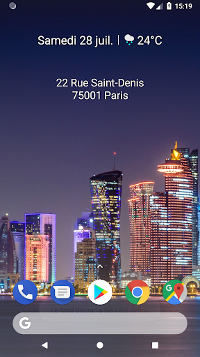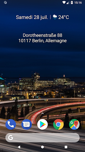 Afficher l'adresse en un coup d'oeil avec le widget d'adresse. Vérifiez votre adresse actuelle ainsi que le calendrier et la météo sur l'écran d'accueil de votre Android. Fond transparent se fond dans le fond d'écran. Aucun autre widget d'adresse n'est aussi efficace que le widget d'adresse.