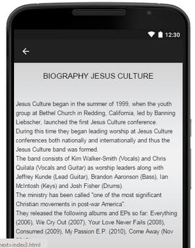 Best of songs Jesus Culture you can listen mp3 music with lyrics. This app free for install , select the song to Lyrics you like and play. This app only provides Mp3 Streaming and no download feature because it may violstion the copyright.