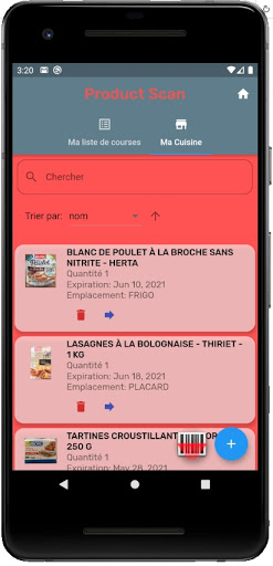 ✔ Transférer facilement les produits entre la liste des courses et ma cuisine et vice-versa.
