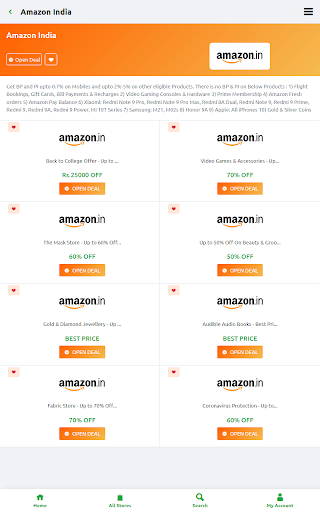 KevADEALS Sert à votre guise en ligne sur une grande variété de catégories telles que l'électronique, les téléphones mobiles, les vêtements, les chaussures, le style de vie, etc. de vos magasins en ligne préférés tels que Flipkart, Myntra, Jabong, TataCliq, Paytm, Makemytrip et bien d'autres. Kevadeals propose des rabais supplémentaires via le code promotionnel, des coupons de réduction, des codes promotionnels, etc.