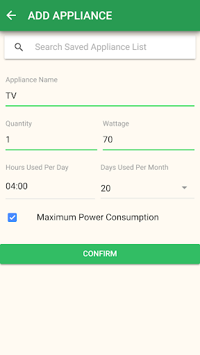 -Control your budget. Estimate your monthly and yearly household power consumption and electrical cost, taking into account all your household appliances.