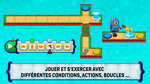 « Code the Robot. Save the Cat » est un jeu amusant et éducatif utilisé pour apprendre les bases de la programmation et de la logique. Explorez les actions, les boucles, les fonctions et les conditions.