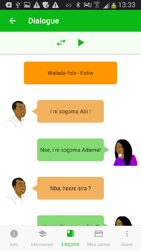 • Un lexique avec moteur de recherche intégré pour trouver facilement un mot ou une phrase en bambara ou en français.