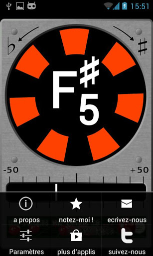 Accordez votre guitare, ukulélé, violon, ... en fait n’importe quel instrument de musique avec la vitesse, la précision et le confort d’un véritable réglage stroboscopique! Il suffit simplement de faire retentir la note à accorder pour qu’elle soit instantanément reconnue et affichée bien en vue. L'anneau stroboscopique autour d'elle montre par sa rotation et sa couleur si vous êtes trop bas, trop haut, ou juste.