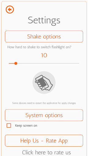 Vous n'aurez qu'à secouer pour allumer la lampe de poche et vous pourrez configurer la force de la lampe de poche avec un mouvement pour activer la lampe de poche LED du téléphone portable.