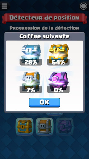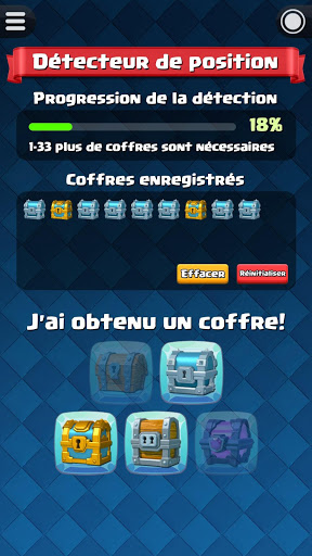 Avant de commencer à utiliser le “Traqueur de coffre pour Clash Royale”, vous devez connaître la position actuelle de la coffre. Il est correct si vous ne savez pas à ce sujet. Vous pouvez utiliser “Détecteur de position” pour connaître la position de la coffre.