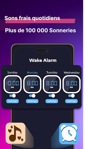 Alarmes matinales avec une torsion : Commencez votre journée avec des sonneries diverses et belles, changeant quotidiennement pour apporter de la fraîcheur à chaque matin.