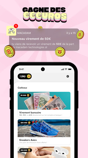 Avec Macadam, vous n'êtes pas seulement actif, vous êtes récompensé. Chaque pas vous rapporte des "coins", notre monnaie virtuelle, que vous pouvez convertir en argent réel et dépenser chez nos partenaires ou transférer directement sur votre compte bancaire. Mettez vos baskets, synchronisez votre montre connectée et prenez le départ - chaque pas compte, chaque pas rapporte.