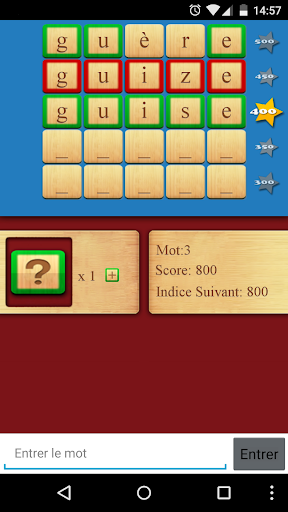 Essayez de deviner le mot en cinq lettres. L'ultime jeu mélant plusieurs genres est finalement disponible en français. Recommandé si vous aimez le jeu Motus. Mais quel est le mot recherché ? Essayez d'effectuer le plus grand score possible et gagnez toutes les 4 Médailles.