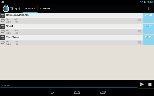 Grâce à lui, vous gardez une vision claire des activités de la journée et du temps passé sur chacune d'elles.