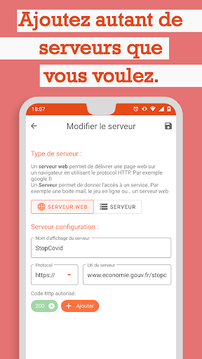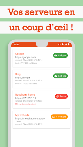 - afficher le statut de vos serveurs: en ligne, timeout, hors ligne, en erreur;