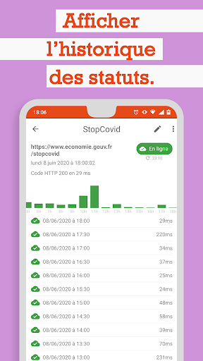 - afficher l'historique du statut de connexion de vos serveur ainsi qu'un graphique de la latence réseau;