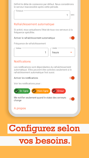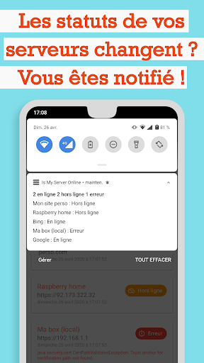 Un rafraîchissement automatique du statut de vos serveurs en arrière plan vous permet d'être notifié si un changement apparait.