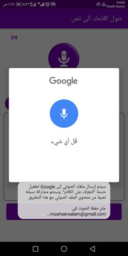 Appliquer sur votre discours sur le texte que vous pouvez profiter de: - Convertissez vos mots en texte, vous pouvez la copier par bouton Copier le texte et collé n'importe où que vous souhaitiez. - Partagez du texte via le bouton Partager. Écrivez et passez en revue les gros articles, puis de les copier ..