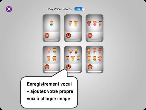 Ce jeu fait partie d'une série de jeux éducatifs destinés aux enfants et créés par MyFirstApp.com. Nous croyons que l'étude, le jeu, l'exploration et l'expérimentation sont ce que les enfants font le mieux. Les enfants sont fascinés par le monde merveilleux et passionnant qui les entoure. Un monde entièrement nouveau est en train d'émerger avec la révolution des tablettes tactiles, ouvrant de nouveaux horizons pour les plus jeunes. Les jeunes enfants peuvent maintenant bénéficier de nouveaux jeux colorés et passionnants, les aidant à acquérir de nouvelles aptitudes cognitives et des capacités motrices fines. MyFirstApp.com aide à rapprocher ce monde nouveau et riche sous les petits doigts des jeunes enfants.