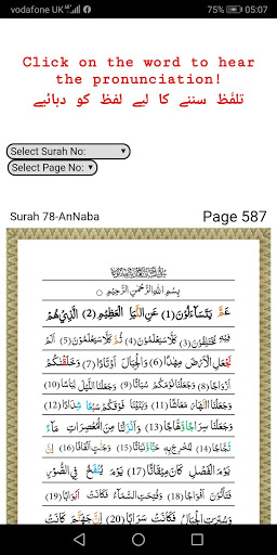 This app will help you learn the correct pronunciation of the words of Juz/Para Amma the 30th Juz of the Quran Kareem. You can read the text as well as hear it by touching it.