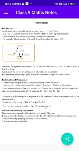 In this app you will find NCERT Notes for class 9 Maths.