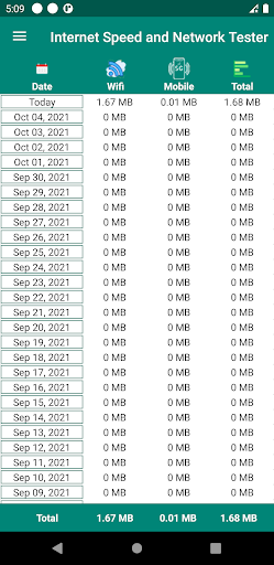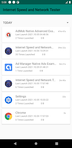 Internet Speed and Network Tester tells information about all apps visited today along with how much data they have consumed. It also tells about how many times the application is visited.