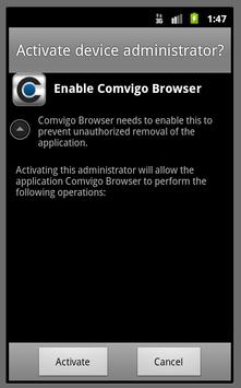7. Apps installed after Comvigo Internet Security activation will be disabled until an administrator logs in