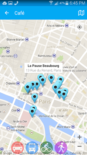 Voir le Street View et obtenir la carte des directions (conduite, transport, vélo, marche) en un seul clic à la navigation GPS.
