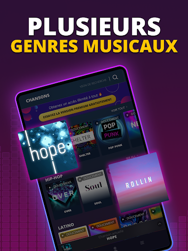 - Application optimisée pour éviter les plantages Des chansons de tous les genres pour que vous puissiez les jouer en toute sécurité