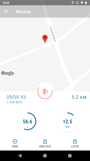 Après c'être connecté, l'utilisateur peut choisir quel véhicule réservé. Une fois un véhicule réserver, l'utilisateur à une clé qui lui permettra d'ouvrir et fermer le véhicule. La CSM (Car Sharing Module) donnera ensuite l'autorisation de démarrer ou non. Le Bluetooth Low Energy est nécessaire.