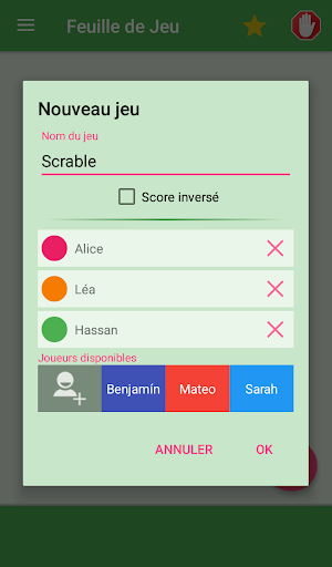 Créez simplement un jeu en lui donnant un nom et en ajoutant des joueurs en un seul clic. Ensuite, vous tapez les scores au fur et à mesure de la progression du jeu. C'est tout!
