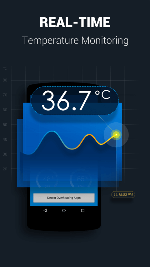 Professional temperature monitoring and controlling app that detects and closes heavy resource consuming apps to reduce CPU usage and lower phone temperature.