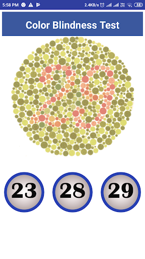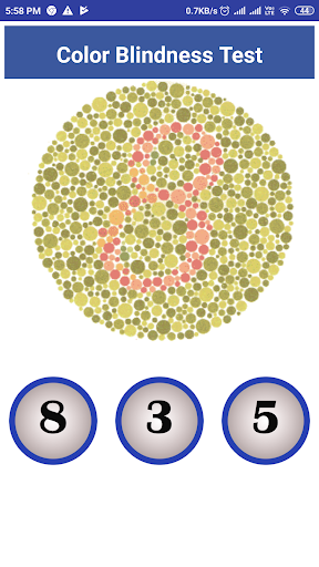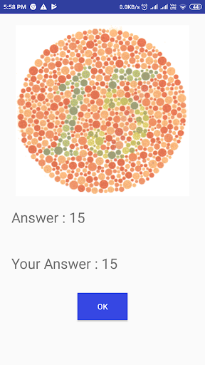 color blind test using 15 Ishihara plates. Test results summary is also generated to check which answer is wrong with correct answer if any.