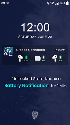 app you can regularly test Airpods' current battery information via the notification alarm / GUI window. You can also monitor the battery details in the notification window in real time, you can also set the cycle quickly and easily via this