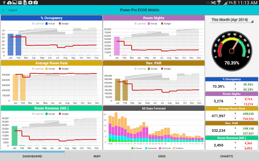 ECOS Mobile a Dashboard App for Power Pro Hotel System Consolidation Environment.