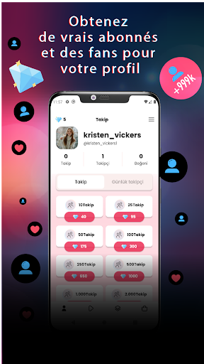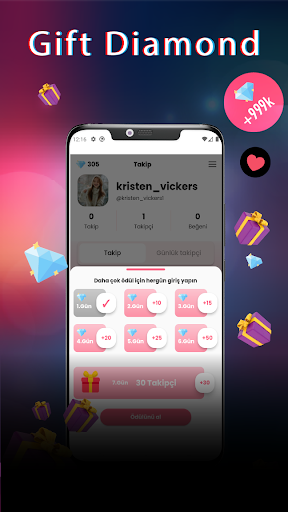 Connectez-vous quotidiennement et gagnez des diamants cadeaux, suivez les utilisateurs, gagnez des diamants illimités et utilisez les diamants que vous gagnez pour obtenir des followers et des likes.