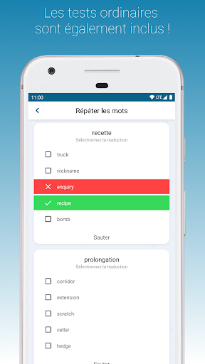 - Les tests de mots offrent plusieurs types de tâches qui aident votre cerveau à créer des associations pour mieux mémoriser les mots anglais, leurs traductions et leur orthographe ;