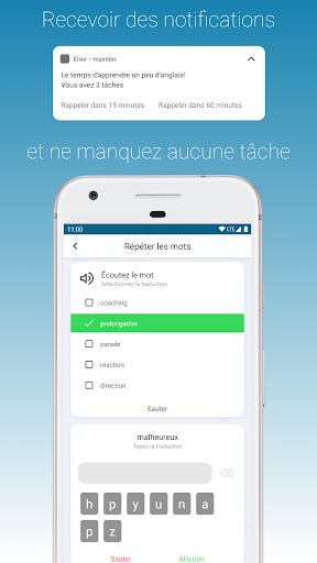 🔔 Recevez des notifications à chaque fois que vous avez besoin d'apprendre la langue anglaise. La régularité est la clé de la réussite !