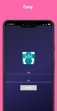 Avec l'application BMI Calculator, vous pouvez calculer et évaluer votre indice de masse corporelle (IMC) en fonction des informations pertinentes sur le poids corporel, la taille, ce qui vous aidera à calculer votre IMC en quelques secondes, c'est votre moyen de trouver votre poids idéal