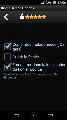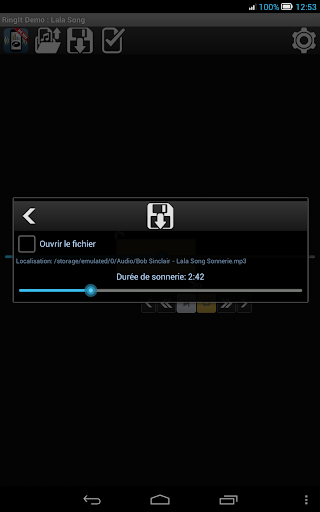 RingIt est une application qui permet de créer tes propores sonneries pour Smartphones ou Tablettes. On a la possibilité de contrôler l'écoute et de couper très précisement le début et la fin de notre sonnerie. Toutes les sonneries peuvent être enregistrées et utilisées comme on veut.