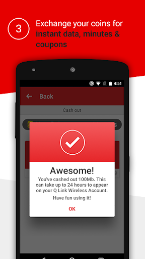 Claim your rewards You can cash out your rewards for QLINK data, minutes and SMS or coupons for: