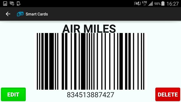 Smart Cards allows you to lighten your wallet by storing all your loyalty cards on your phone. To add a card: