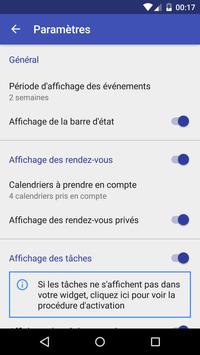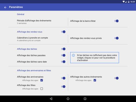 What and When est entièrement configurable. Vous pouvez choisir la période de données à afficher (de 1 jour à 1 an), afficher ou non les rendez-vous, tâches, anniversaires ou fêtes, et plein d’autres informations liées à ces données (rendez-vous privés, tâches passées ou sans date, etc...).