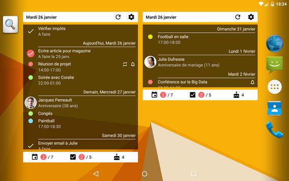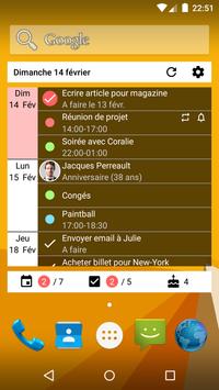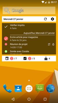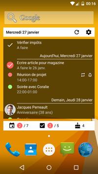 What and When est un widget vous permettant de suivre votre agenda. Il vous rappelle vos prochains rendez-vous, tâches et anniversaires dans une liste scrollable. What and When fonctionne sur téléphones et tablettes.