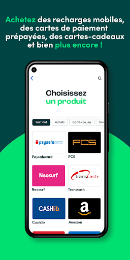 Votre code de recharge mobile ou carte-cadeau est livré sur votre téléphone en quelques secondes. Votre carte d'achat, mobicarte ou recharge prépayée sont ainsi immédiatement prêtes à être utilisées ! C'est ce que nous appelons une application tout-en-un !