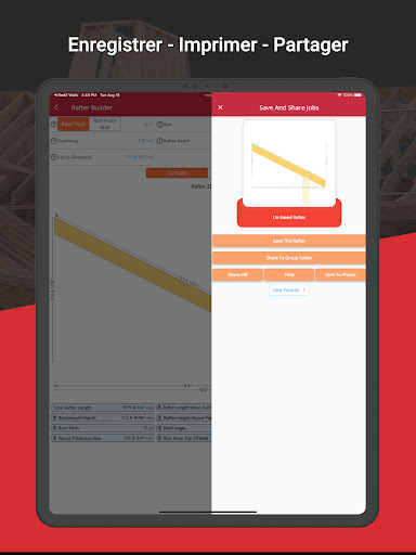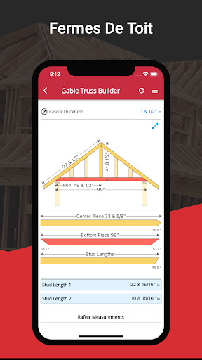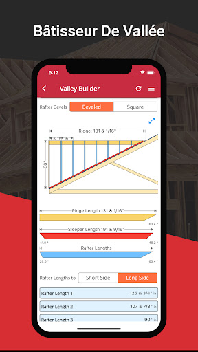 L'application RedX Roof dispose d'un calculateur de chevron gratuit(free rafter calculator), d'un calculateur de construction gratuit, de chevrons de hanche, d'un constructeur de vallée, d'un constructeur de fermes, d'angles en contreplaqué, d'un constructeur de vallée, d'un toit de tourelle et d'un constructeur de lucarnes. Vous économiserez d'innombrables heures de travail la première fois que vous l'utiliserez.