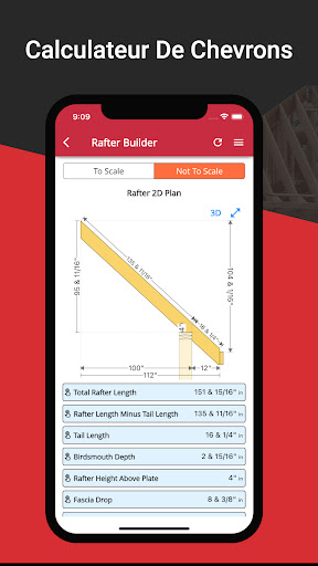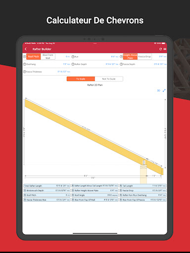 Ensuite, l'application générera automatiquement une vue à l'échelle de ce à quoi ressemblera le Rafter, ainsi que toutes les mesures.
