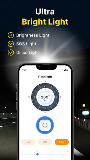 & quot; application de lampe de poche - Alerte flash & quot;Application qui va avec une boussole, vous donnant une direction dans l'obscurité.Ne le manque pas!