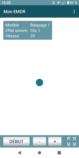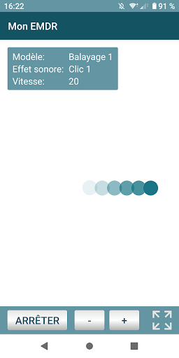 Cette application facilite une charge optimale du cerveau humain en affichant un objet en mouvement en combinaison avec la reproduction d'un effet sonore. L'objectif est de soutenir l'étape du processus de désensibilisation, l'un des éléments clés du processus EMDR.