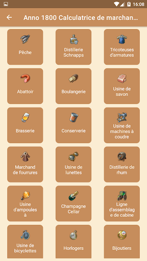 L'Anno 1800 Calculatrice de marchandises pour Android calcule le nombre de bâtiments de production nécessaires pour vous en fonction de la population de votre île. Ceci assure l'approvisionnement optimal de vos habitants.